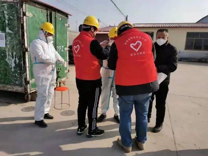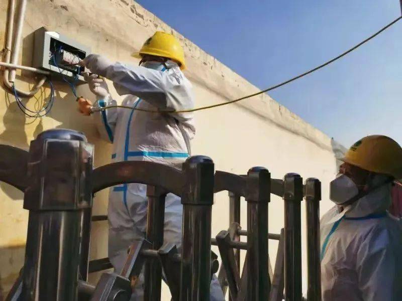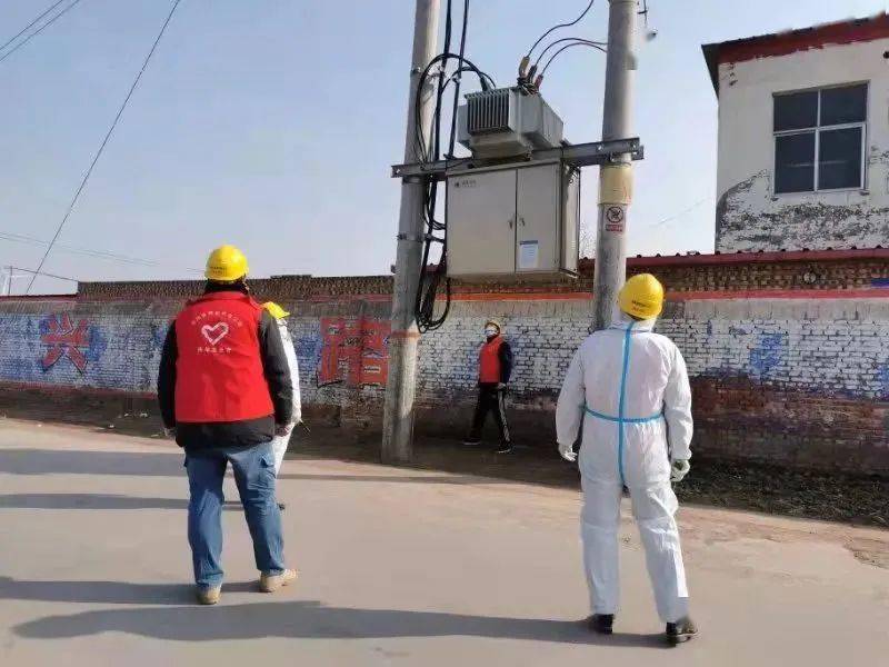 在辛村水立方隔离点,安阳县供电公司青年志愿者开展检查隔离点用电线路,保障隔离点用电安全。