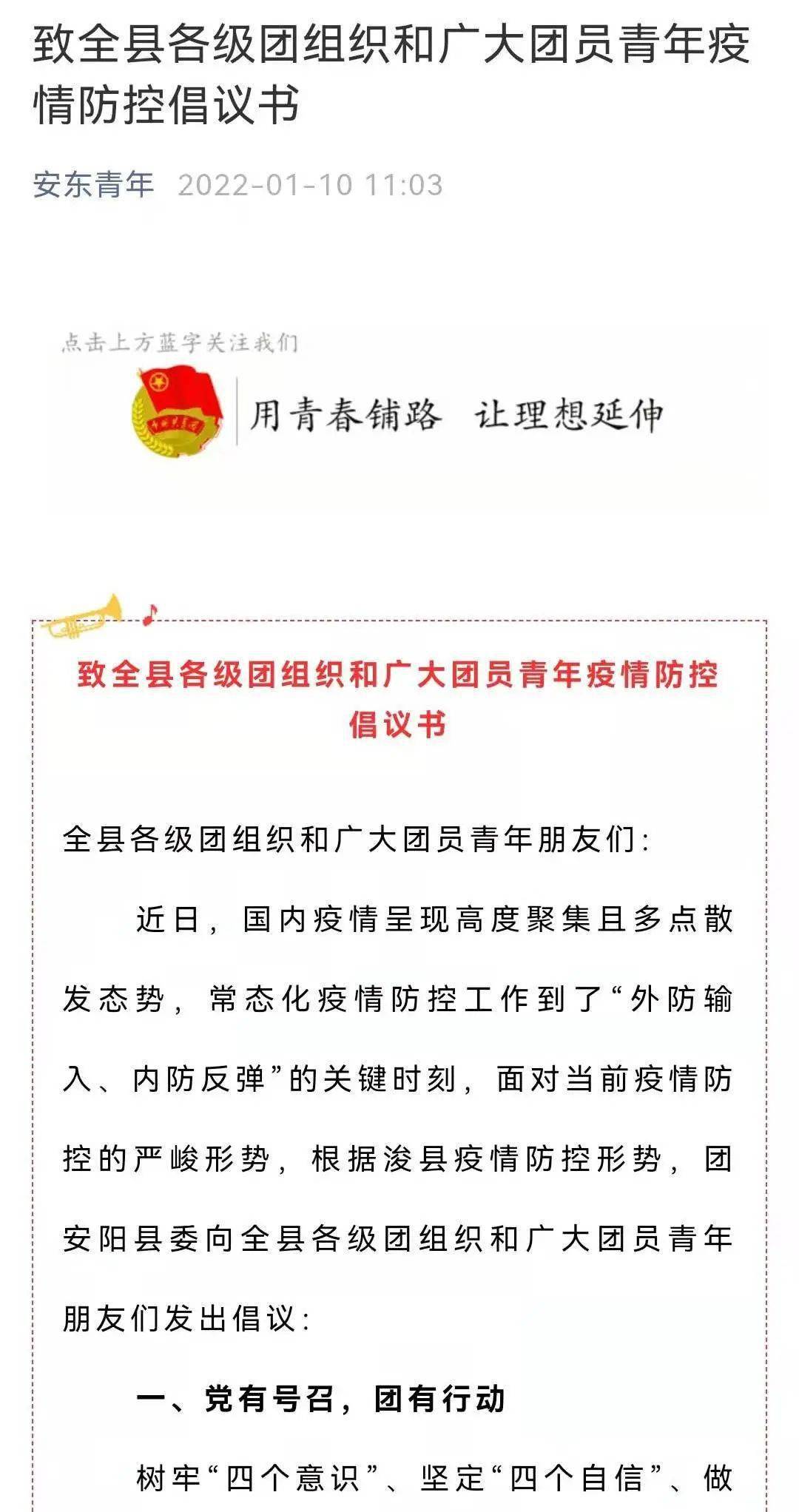 原标题:【共同战“疫”】安阳县青年:加强联防联控,为“疫”线加油!