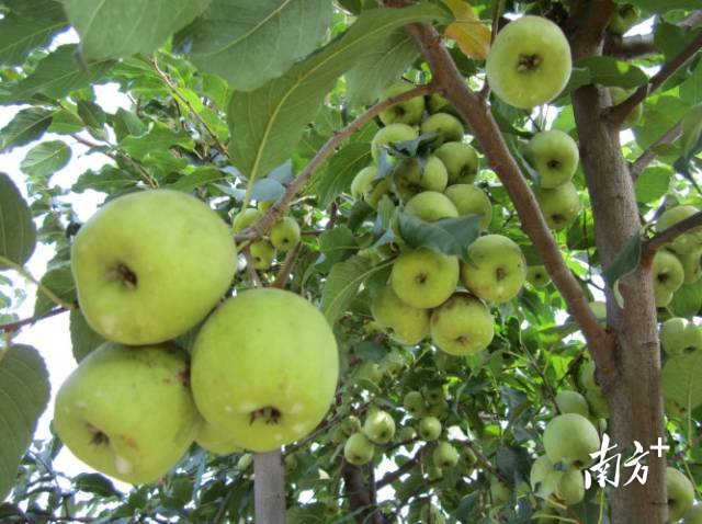 碧绿的树叶中,一颗颗嫩绿的果实悬挂其间。虽然同为绿色,但硕大的果实依然无法被树叶掩盖,照样引人关注。这是石溪村引进后大力发展的大果山楂。